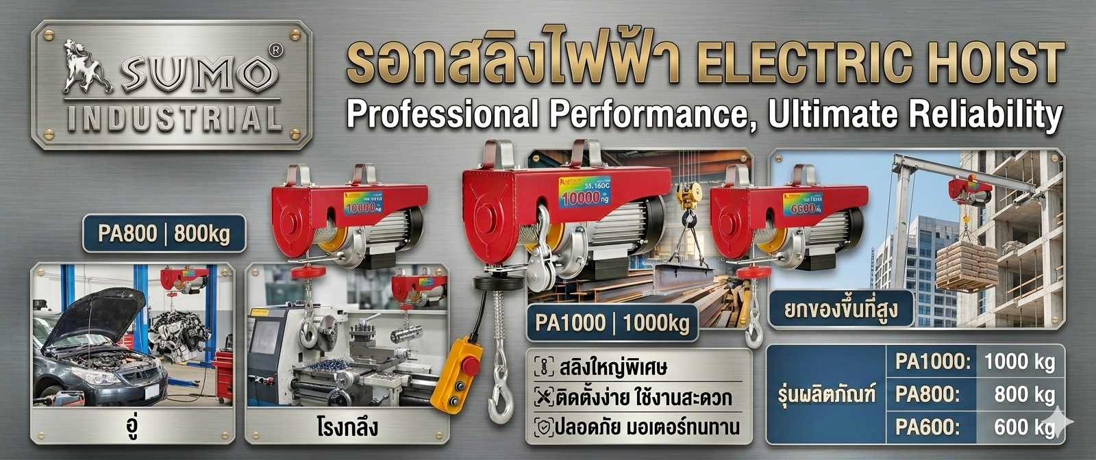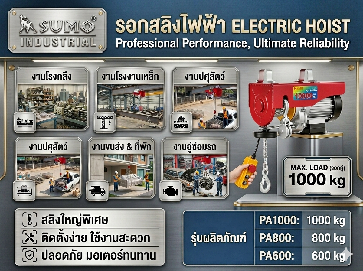 รอกไฟฟ้า 1000kg Sumo รอกสลิงไฟฟ้า ยกได้ 1000 กก Sumo Electric hoist PA1000 **ของแท้**มีประกัน
